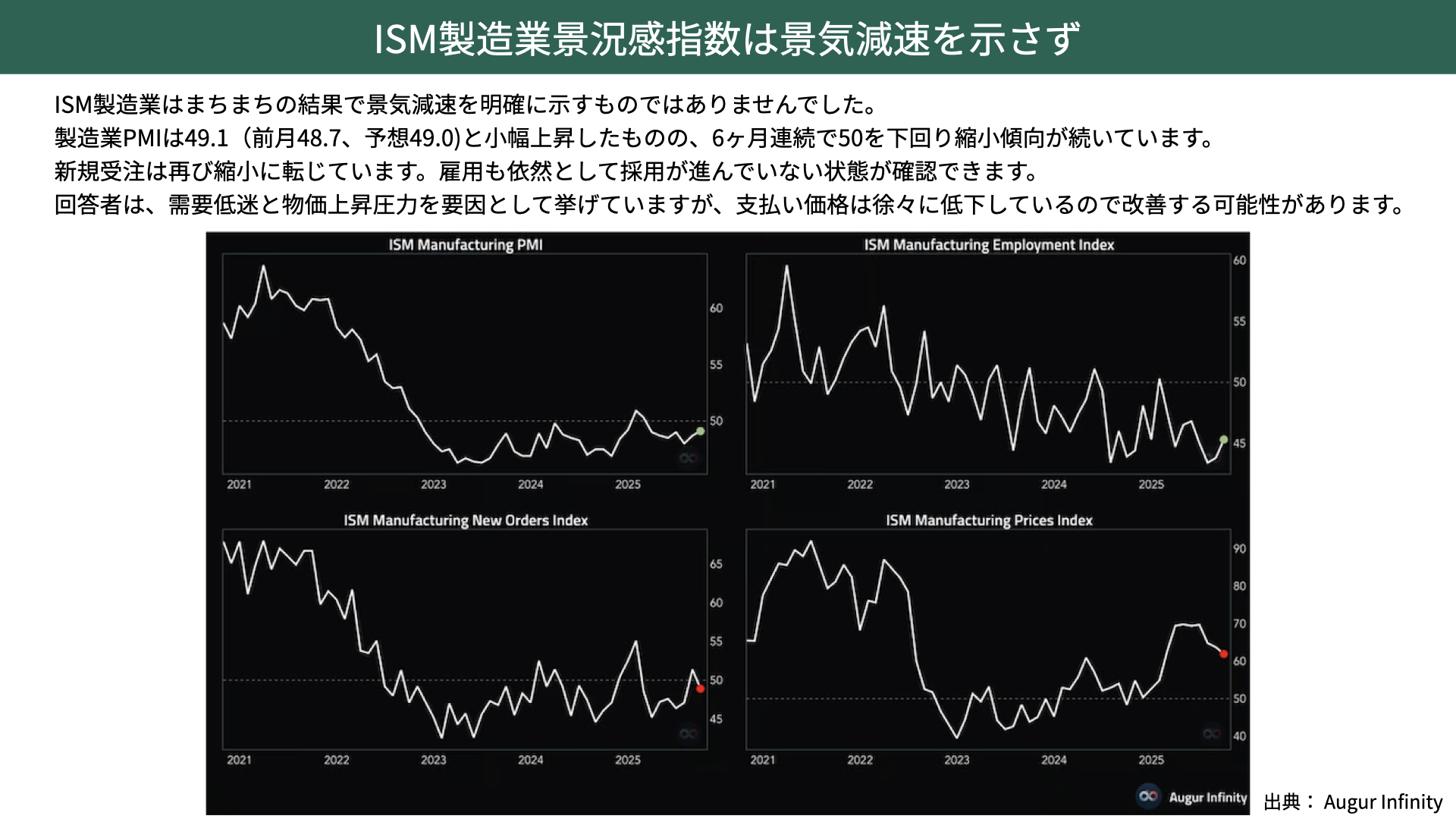 ISM製造業景況感指数は景気減速を示さず