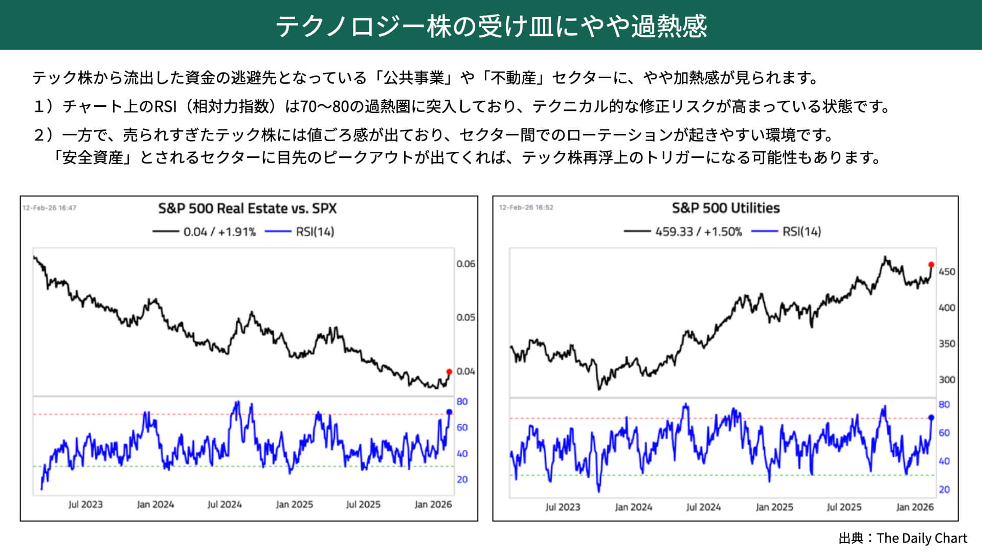 一方で、テック株から大量の資金が流出した影響で、一部のセクターではやや加熱感、資金の偏りが出てきているのも事実です。
