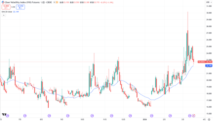 米国株式市場では、3月9日に「恐怖指数」として知られるCBOEボラティリティ指数(VIX指数)が急上昇し、約1年ぶりの高水準に迫りました。VIX指数はわずか1週間で57%近くも上昇し、2025年4月にトランプ大統領が「解放の日(リベレーション・デー)」関税を発表したショック以来の高水準を記録しました。