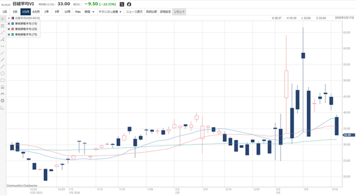 2026年2月末から3月にかけて、米国およびイスラエルによるイランへの軍事攻撃を端緒に中東情勢が急速に緊迫化し、世界の金融市場は大きく動揺しています。原油価格の歴史的な高騰を背景にインフレ再燃への懸念が強まっており、日米の株式市場ではボラティリティ(予想変動率)が急上昇し、投資家の不安心理が極度に高まっています。