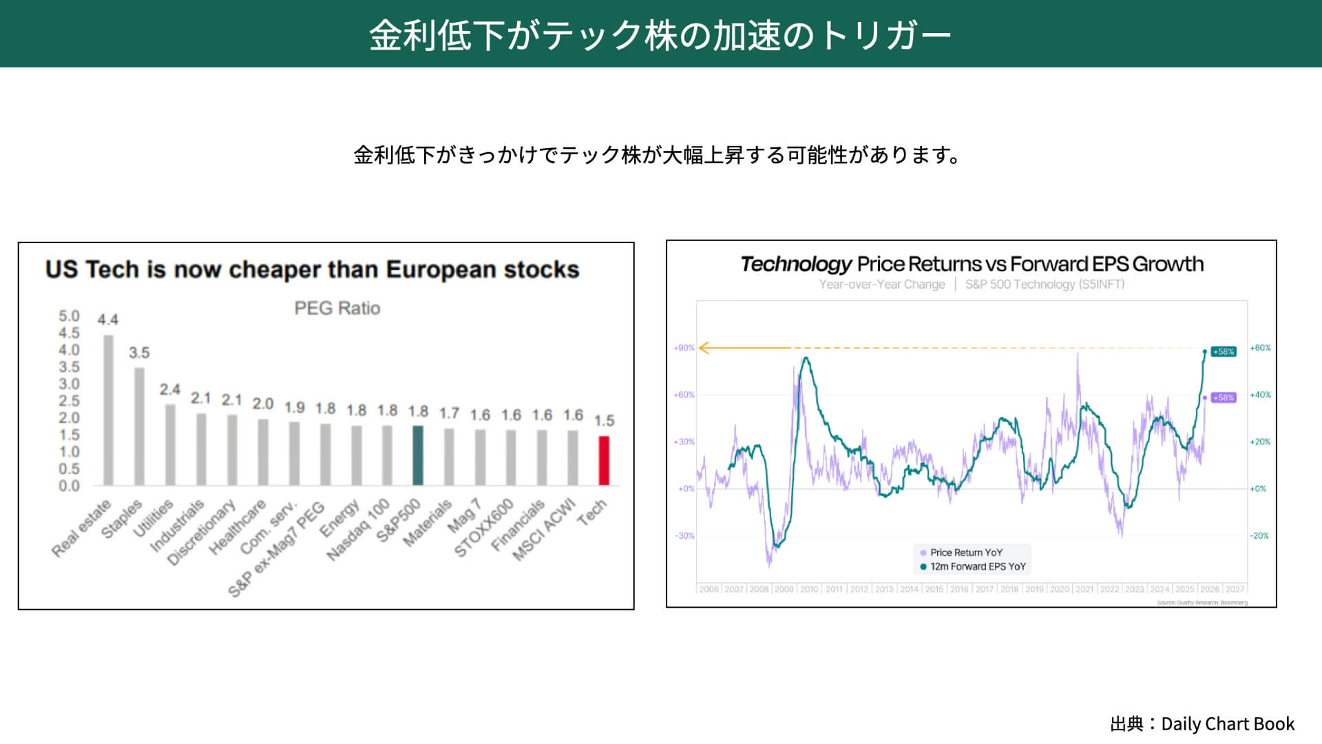 さらに、金利低下はテック株の加速のトリガーになり得ます。お伝えしたいと思います。